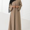 The Nadiya Abaya is a graceful two-piece set, crafted with delicate lace detailing for an effortlessly refined look. Designed for elegance and versatility, it features a matching inner and a coordinated hijab,